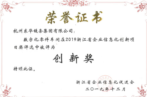 近日,從2019產(chǎn)業(yè)數(shù)字化峰會上傳來好消息,余杭區(qū)被評為“浙江產(chǎn)業(yè)數(shù)字化轉(zhuǎn)型二十強(qiáng)地區(qū)”,東華鏈條憑借“數(shù)字化零件車間項(xiàng)目”榮獲”2019浙江省企業(yè)信息化創(chuàng)新項(xiàng)目獎(jiǎng)’。