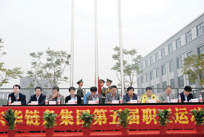 本屆運動會由工會主席魯小林主持。副總經(jīng)理袁立華致開幕辭。袁總說,今年公司創(chuàng)建22周年,在宣董事長的領導下,在各位員工的共同努力下,企業(yè)穩(wěn)健發(fā)展,取得卓越成效。這些成績的取得來源于東華人忠實地踐行董事長提出的“誠信、務實、創(chuàng)新、求更好”的企業(yè)精神,來源于你們發(fā)揮永不言敗的拼搏精神,來源于你們勇于開拓創(chuàng)新的改革精神,這些都是企業(yè)跨越發(fā)展的“軟實力”。今天,相信你們會在公平公正的競技中,充分凝聚和展現(xiàn)東華人的精神,超越自我,做到“工作中誠信、務實、創(chuàng)新、求更好 ; 賽場上團結、激情、拼搏、爭上游”,共同努力譜寫出東華“爭創(chuàng)世界鏈傳動行業(yè)第一”的華彩樂章。