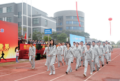 隨著高亢激昂的音樂響起,國旗隊、廠旗隊、軍樂隊、旗手、紅旗隊、鮮花隊及10個運動員代表方隊邁著整齊劃一的隊形,喊著競賽口號,大踏步有序經(jīng)過主席臺,展現(xiàn)出東華人朝氣蓬勃的青春活力和誠信、務實、創(chuàng)新、求更好的企業(yè)精神。