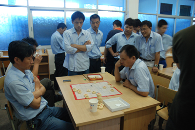 為了運(yùn)動(dòng)會(huì)當(dāng)天完成所有運(yùn)動(dòng)項(xiàng)目的比賽,本屆運(yùn)動(dòng)會(huì)規(guī)定了個(gè)人限報(bào)兩個(gè)項(xiàng)目,不包括團(tuán)體賽和每個(gè)單項(xiàng)各分工會(huì)的報(bào)名人數(shù)最多不能超過2名。因此,9月中下旬以來,各部門、分廠均紛紛舉行了內(nèi)部淘汰賽,以派出最優(yōu)秀的員工參賽。9月26日,舉行了男女乒乓球、羽毛球半決賽。9月27日,舉行了男子圍棋、象棋;女子五子棋決賽。獲得圍棋前三名的是徐凱、朱寶德、黃海濱;獲得象棋前三名的是張建明、呂鐵軍、潘道元;獲得五子棋前三名的是肖輝、王衛(wèi)玲、龔娟。本屆運(yùn)動(dòng)會(huì)除圍棋外,個(gè)人項(xiàng)目均取前六名,團(tuán)體項(xiàng)目取前八名,集團(tuán)將在運(yùn)動(dòng)會(huì)當(dāng)天向獲獎(jiǎng)運(yùn)動(dòng)員和優(yōu)秀團(tuán)體頒發(fā)榮譽(yù)證書和錦旗,并給予一定的物質(zhì)獎(jiǎng)勵(lì)。