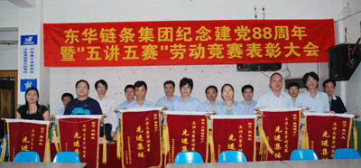 會上,總經(jīng)理張世強(qiáng)作了重要講話。張總說,在“七一”即將來臨之際,我們召開“紀(jì)念中國共產(chǎn)黨成立88周年暨五講五賽勞動競賽表彰大會”。首先,我代表集團(tuán)領(lǐng)導(dǎo)、黨委向受表彰的先進(jìn)集體和先進(jìn)個人表示熱烈地祝賀,向他們表示崇高的敬意!號召全體黨員、全廠職工認(rèn)真學(xué)習(xí)他們的先進(jìn)事跡和崇高精神,立足崗位、艱苦奮斗,在生產(chǎn)勞動中為企業(yè)建功立業(yè),在推動?xùn)|華集團(tuán)持續(xù)發(fā)展中做出更大的貢獻(xiàn)。