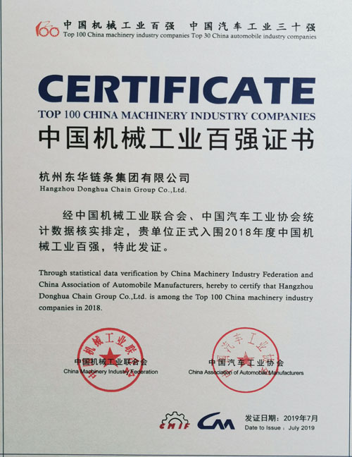 近日,中國機械工業(yè)聯(lián)合會、中國汽車工業(yè)協(xié)會聯(lián)合發(fā)布了2018年中國機械工業(yè)百強、汽車工業(yè)三十強企業(yè)名單。我公司連續(xù)四年躋身中國機械工業(yè)百強榜,排名第59位,也是中國鏈傳動行業(yè)唯一上榜企業(yè)。