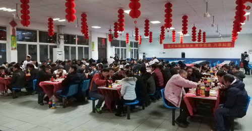 22日本是集團春節放假的日子,但在集團總部的食堂燈火通明,紅燈滿掛,歡聲笑語,220多名外地留在杭州過年的員工在這里舉辦一場 “同吃年夜飯,歡度除夕夜”年度聚會活動。