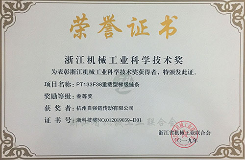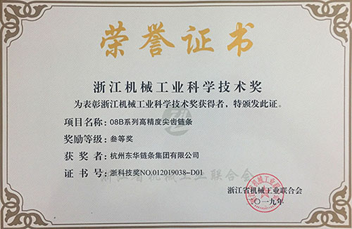 日前,浙江省機(jī)械工業(yè)聯(lián)合會(huì)通過(guò)視頻會(huì)議召開了五屆二次會(huì)員代表大會(huì)和五屆三次理事會(huì)。會(huì)上公布了54項(xiàng)產(chǎn)品及技術(shù)創(chuàng)新成果獲得“2019年度浙江機(jī)械工業(yè)科學(xué)技術(shù)獎(jiǎng)”。東華自主開發(fā)的“08B系列高精度尖齒鏈條”和“PT133F38重載型梯級(jí)鏈條”兩項(xiàng)高端鏈條產(chǎn)品榮獲三等獎(jiǎng),這是東華產(chǎn)品創(chuàng)新項(xiàng)目連續(xù)八年榮獲浙江機(jī)械科技獎(jiǎng),也是獎(jiǎng)項(xiàng)名單中唯一鏈傳動(dòng)企業(yè)的高端產(chǎn)品獲獎(jiǎng)。