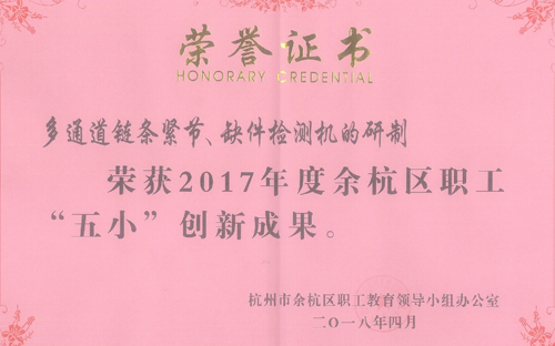 日前,在2018年開發(fā)區(qū)工會工作大會上,公司工會喜獲多項殊榮。東華鏈條集團工會榮獲2017年度余杭區(qū)職工“五小”競賽活動優(yōu)秀組織單位稱號;子公司自強鏈傳動公司工會榮獲“2017年度余杭區(qū)企業(yè)技能比武優(yōu)秀組織單位”稱號;公司“一種鏈條絞孔機的工裝模具”榮獲2017年度杭州市職工“五小”創(chuàng)新成果;公司“梯級鏈自動上油線改進”榮獲2017年度余杭區(qū)職工“五小”創(chuàng)新成果獎等。