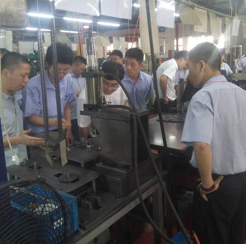 隨后客戶參觀了汽車鏈鏈條裝配車間、鏈板沖制車間等工序。在作業(yè)現(xiàn)場針對客戶提出的問題,接待人員均耐心地為客戶一一解答,客戶對公司汽車鏈條生產作業(yè)現(xiàn)場的生產能力和質量保證能力表示滿意。