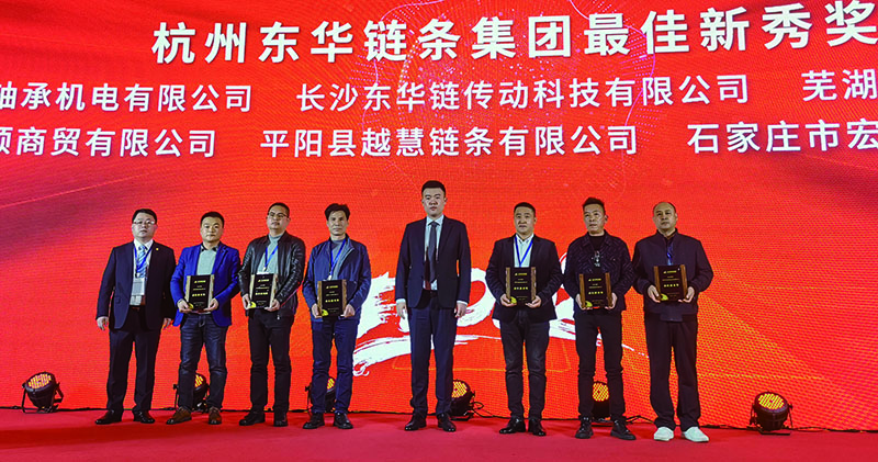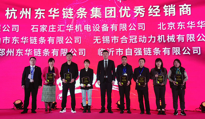 為感謝廣大經銷商為企業的發展作出的卓越貢獻,會上隆重表彰了東華15家“優秀經銷商”獎、6家“最佳新秀”獎;盾牌公司10家“優秀經銷商”獎,董事長宣成向獲獎單位頒發獎牌并合影留念。