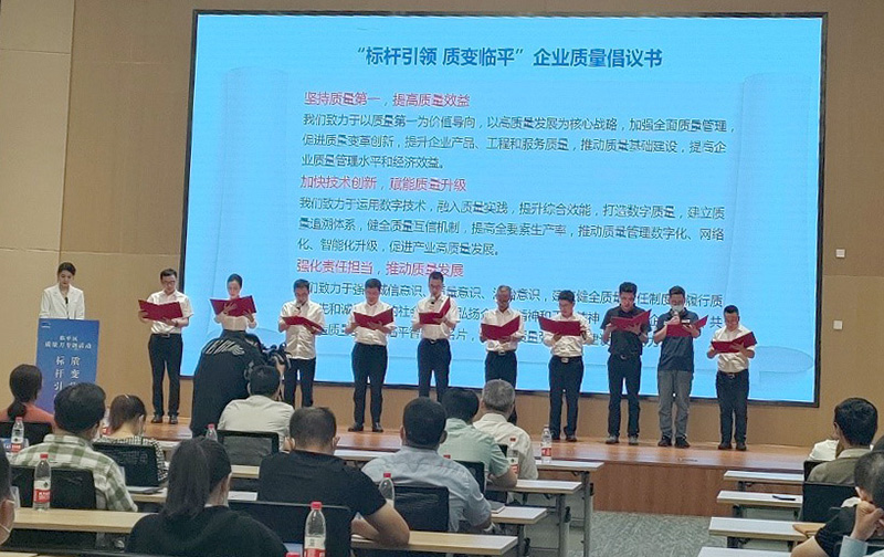9月16日,臨平區(qū)質(zhì)量強(qiáng)區(qū)領(lǐng)導(dǎo)小組辦公室組織召開“標(biāo)桿引領(lǐng),質(zhì)變臨平”質(zhì)量月專題活動(dòng)。東華作為區(qū)政府質(zhì)量獎(jiǎng)企業(yè)應(yīng)邀參加“臨平質(zhì)量故事”分享,副總經(jīng)理廖杭州上臺宣讀了“標(biāo)桿引領(lǐng),質(zhì)量臨平”企業(yè)質(zhì)量倡議書。
