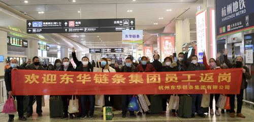 當第一批乘坐成都到杭州免費專列的18名東華員工有序走出杭州東站時,迎接他們的是區政府和公司領導,還有區政府贈送他們的口罩、牛奶、面包等愛心大禮包,公司還派專人專車護送他們回到家中,受到廣大員工的好評。