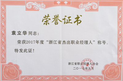 集團(tuán)副總經(jīng)理袁立華被授予“浙江省杰出職業(yè)經(jīng)理人”稱號