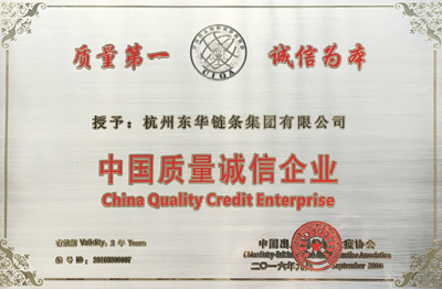 日前,中國檢驗檢疫協會公布了2016年“中國質量誠信企業”名單。東華鏈條集團自2012年以來連續3屆被授予“中國質量誠信企業”稱號。