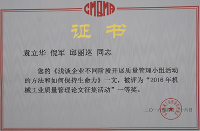 本次會(huì)議由中國(guó)機(jī)械工業(yè)質(zhì)量管理協(xié)會(huì)組織,全國(guó)上百家企業(yè)的200多人參加會(huì)議。會(huì)上邀請(qǐng)國(guó)家工信部領(lǐng)導(dǎo)與行業(yè)專(zhuān)家解析了《國(guó)家“十三五”規(guī)劃》內(nèi)容和路線圖,介紹了《制造業(yè)質(zhì)量和品牌提升三年行動(dòng)計(jì)劃(2016-2018年)》。各行業(yè)質(zhì)量負(fù)責(zé)人交流了行業(yè)質(zhì)量管理經(jīng)驗(yàn)和企業(yè)落實(shí)機(jī)械工業(yè)“十三五”質(zhì)量規(guī)劃行動(dòng)舉措、方法,同時(shí)對(duì)全國(guó)機(jī)械工業(yè)質(zhì)量管理優(yōu)勝論文進(jìn)行了評(píng)選和表彰。東華集團(tuán)的《淺談企業(yè)不同階段開(kāi)展質(zhì)量管理小組活動(dòng)的方法和如何保持生命力》及《以質(zhì)量為核心,化“危”為“機(jī)”,創(chuàng)建國(guó)際知名品牌》兩篇論文分別獲得一等獎(jiǎng)和優(yōu)秀獎(jiǎng)。